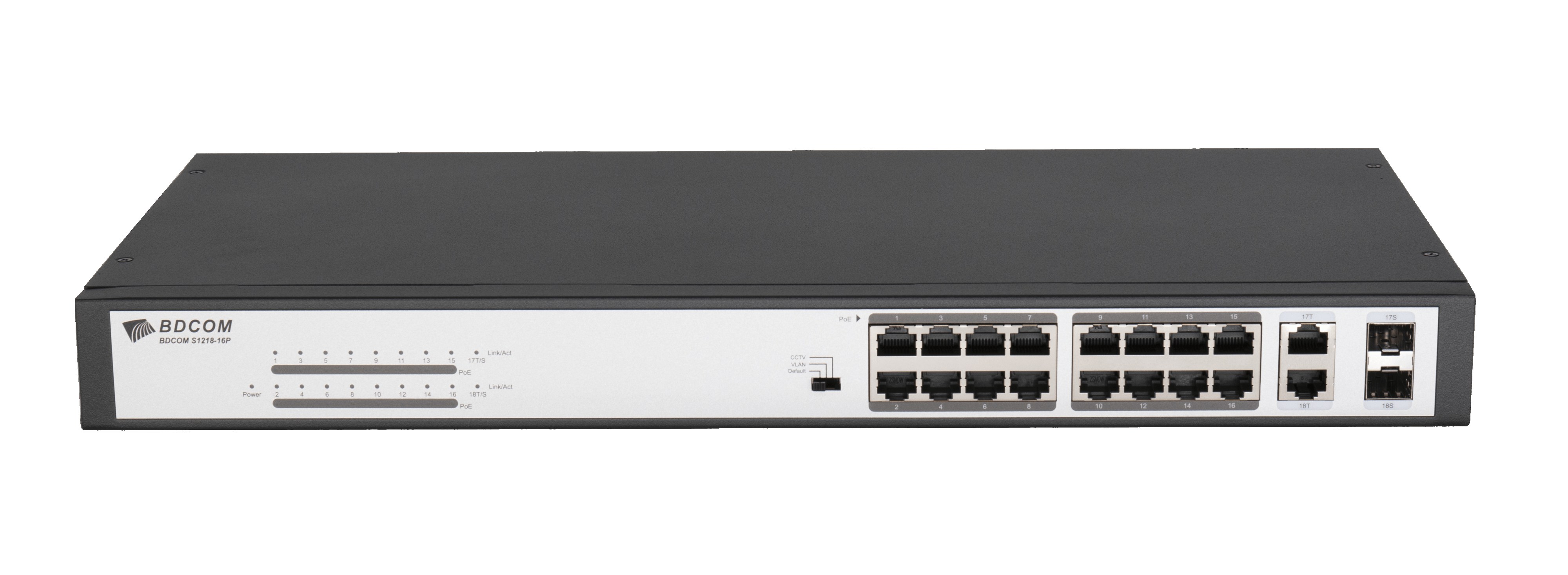 BDCOM 16-Port 10/100 POE switch, 16 POE ports, 2 x 1000Mbps Combo ports