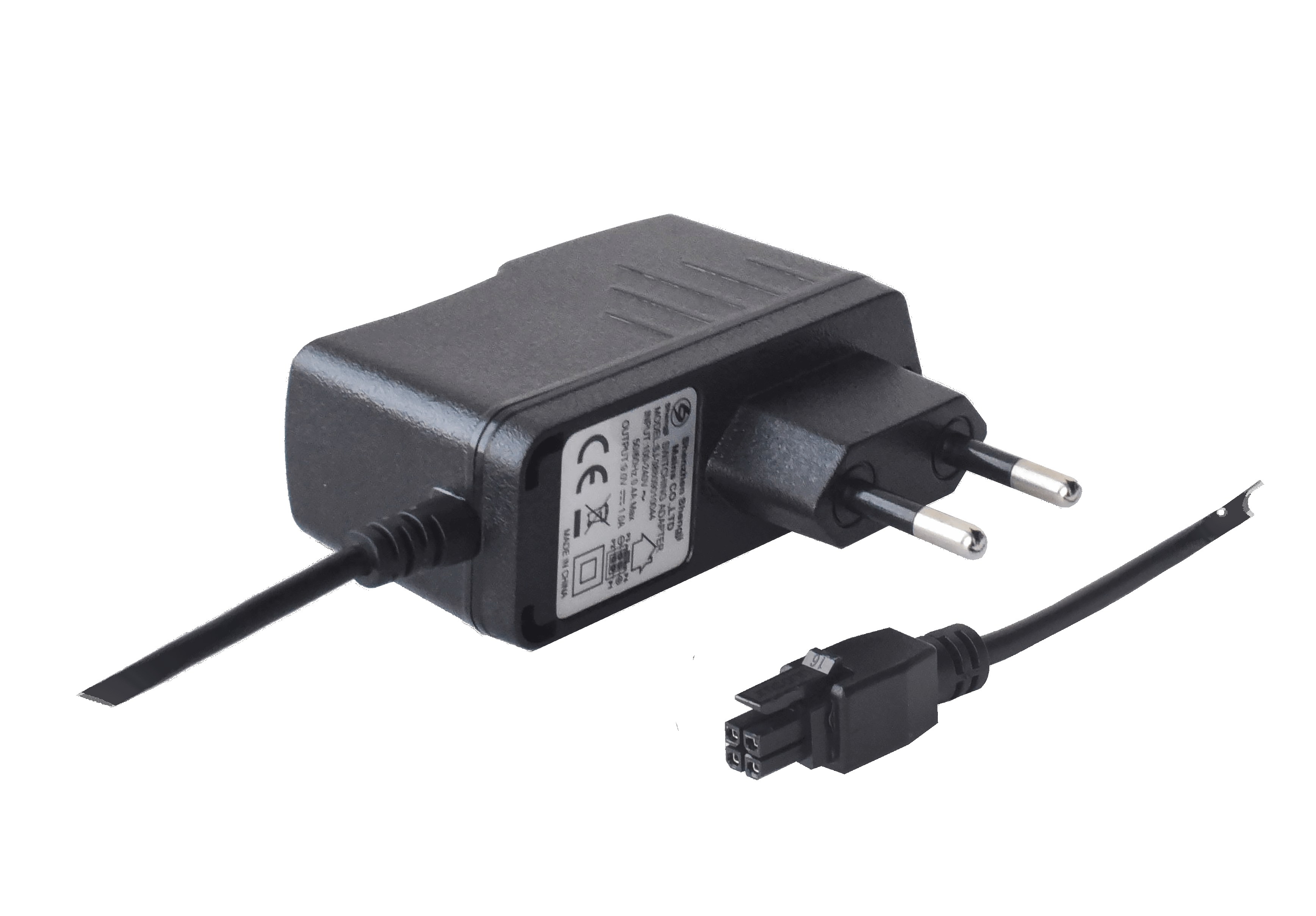 9VDC output, 1A. Euro 2-point plug, 4-pin connector plug