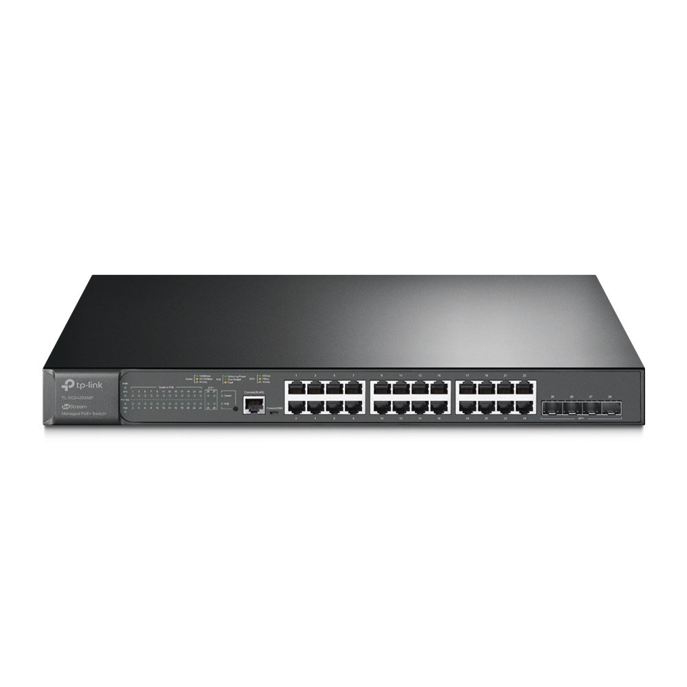 4× 10 Gbps SFP+ slots enable high-bandwidth connectivity and non-blocking switching capacity. 24× 802.3at/af-compliant PoE+ ports with a total power supply of 384 W*. Zero-Touch Provisioning (ZTP)**, Centralized Cloud Management, and Intelligent Monitoring. Cloud access and Omada app for ultra convenience and easy management. Helps route internal traffic for more efficient use of network resources. IP-MAC-Port Binding, ACL, Port Security, DoS Defend, Storm control, DHCP Snooping, 802.1X, Radius Authentication, and more. L2/L3/L4 QoS and IGMP snooping. Web, CLI (Console Port, Telnet, SSH), SNMP, RMON, and Dual Image bring powerful management capabilities