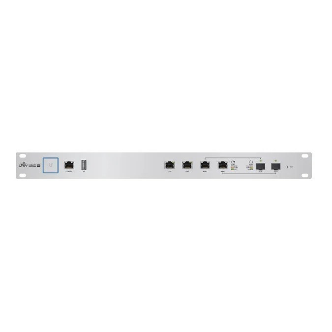 Ubiquiti's UniFi USG-PRO-4 Security Gateway offers a powerful combination of advanced security features and high-performance routing, all in a cost-effective package including deep packet inspection (DPI), intrusion detection and prevention (IDS/IPS), and firewall controls, ensuring comprehensive network protection. Designed with a rack-mountable form factor, the USG-PRO-4 also includes fibre connectivity options and is powered by a dual-core 1 GHz processor.