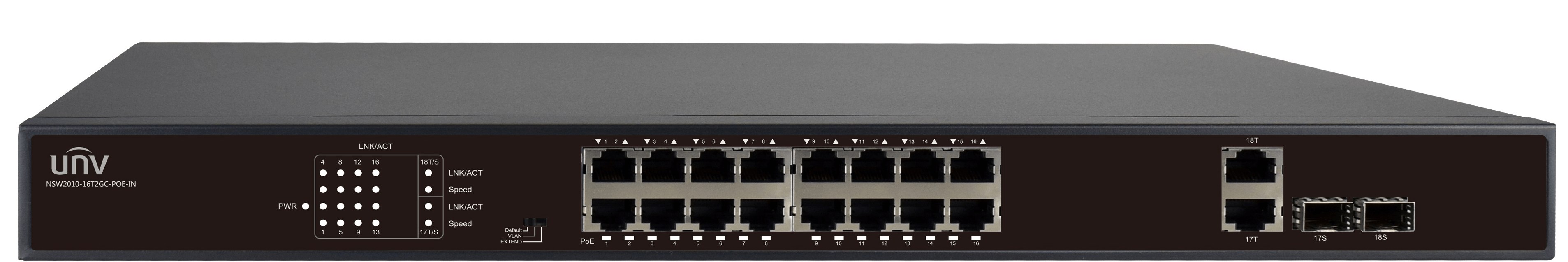 Uniview 16 x 10/100 Ethernet Ports, 2 x Gigabit Combo Ports, PoE 802.3af/at with 250W PoE